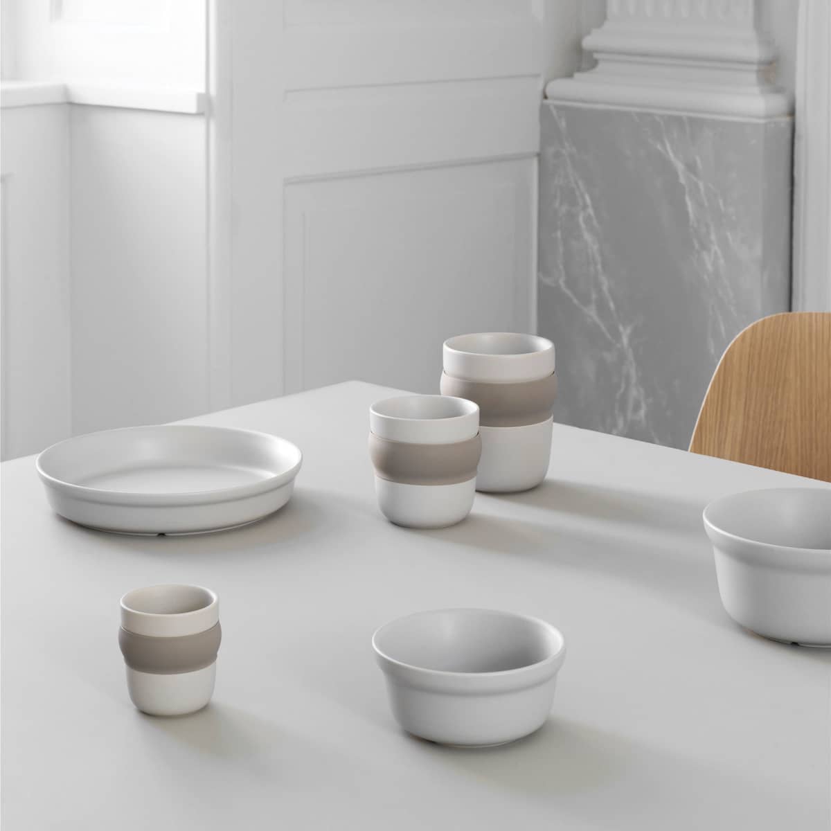 Obi-skålen har en diameter på 11 cm, är 5 cm hög och finns i fyra olika färger: ljusblå, grå, sand och blush. Från samma serie finns också djupa fat och porslinskoppar som är fint att kombinera med skålarna. Tål maskindisk.