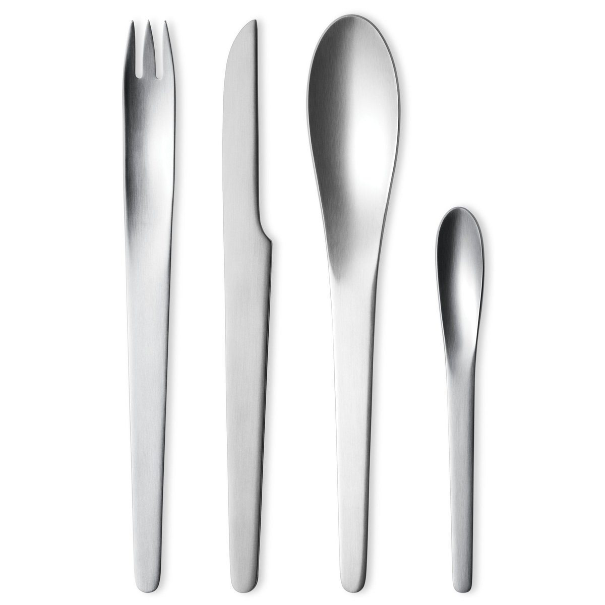Arne Jacobsens bestickserie för George Jensen har sedan sitt lansering 1957 tagit världen med storm. Den för tiden revolutionerade designen utmärktes av sina extremt enkla och vågade linjer, samtidigt som bestickens funktionella egenskaper låg i fokus. Än idag är bestickens skandinaviska design en tidlös detalj till din bordsdukning. Det matta stålet passar enkelt ihop med din övriga servis och gör både det vardagliga och festliga bordet lite lyxigare.