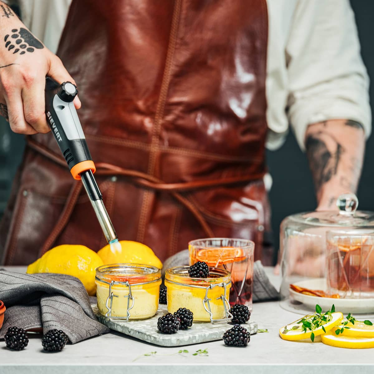 Egentligen kan brännaren användas till måltidens alla rätter. Sota förrätten, griljera huvudrätten, karamellisera desserten och varför inte för att lägga sista touchen på drinken? Men användningsområdena stoppar inte där. Glöm inte att också tända ljusen på matbordet eller senare brasan i vardagsrummet.