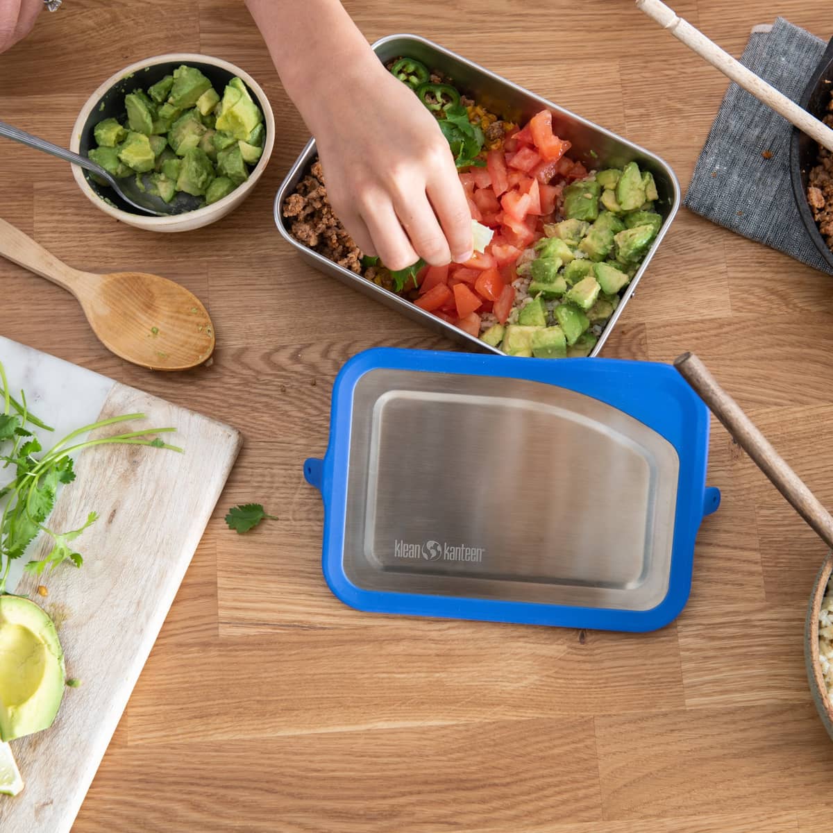 Denna eleganta matlåda i hög kvalitet från Klean Kanteen är perfekt att ha med till jobbet, skolan eller på utflykt i skogen. Matlådan rymmer en hel måltid och har en kapacitet på ca 1 liter. Den är utmärkt till rester från middagen och tål användning i ugn för enkel uppvärmning. Du behöver heller inte bekymra dig för att matlådan ska läcka, då locket har silikonkanter och en praktisk tryckknapp som säkrar att detta inte sker. Matlådan mäter 14,9 cm x 14,6 cm x 5 cm.