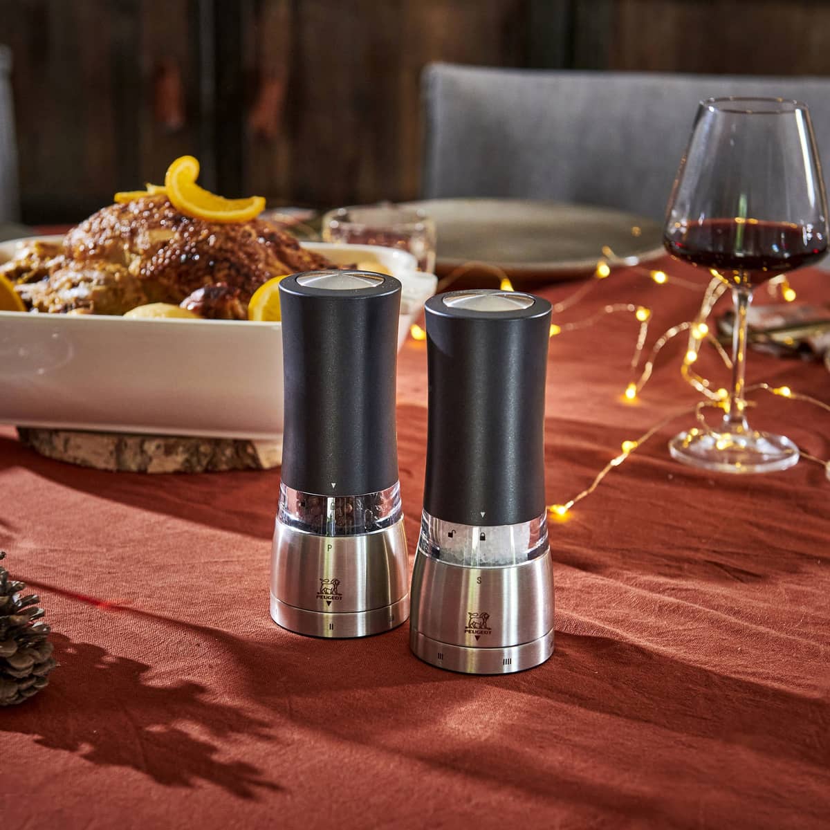 Daman elektrisk pepparkvarn har en balanserad design med en väl avvägd harmoni mellan hårt rostfritt stål och bokträ med en mjuk svart satinfinish. Mitten på kvarnen är transparent, så att du lätt kan identifiera innehållet även om du har flera kvarnar. Pepparkvarnen är utrustad med Peugeots patenterade justeringssystem u'Select, så att du enkelt kan välja den malningsgrad som passar till just den rätt du lagar för dagen. Du maler genom att trycka på toppen av kvarnen, medan lampan under kvarnverket gör det enkelt att se hur mycket du kryddar. Du har hela 25 års garanti på kvarnens malverk och två års garanti på övriga delar. Kvarnen drivs av 6 x AAA-batterier.