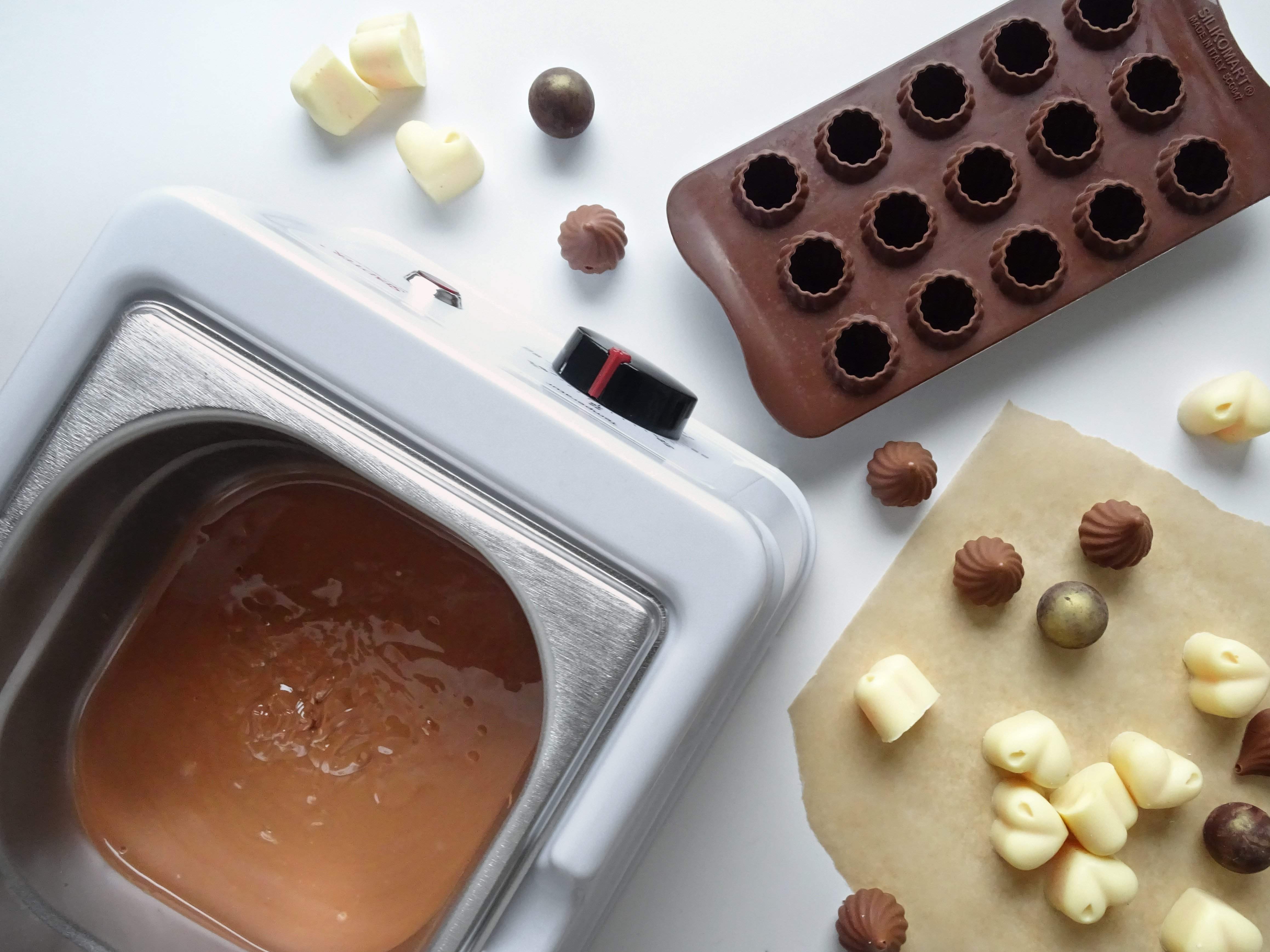 Det är avgörande att ha koll på temperaturen när du ska smälta choklad. Om chokladen härdar korrekt så kommer du att få perfekta fyllda chokladpraliner. Om de stelnar snabbt kommer de att bli vackra och blanka och ha det där trevliga knäcket när man sätter tänderna i dem. Det finns många olika sätt att smälta choklad på, ett exempel är att göra det över ett vattenbad.