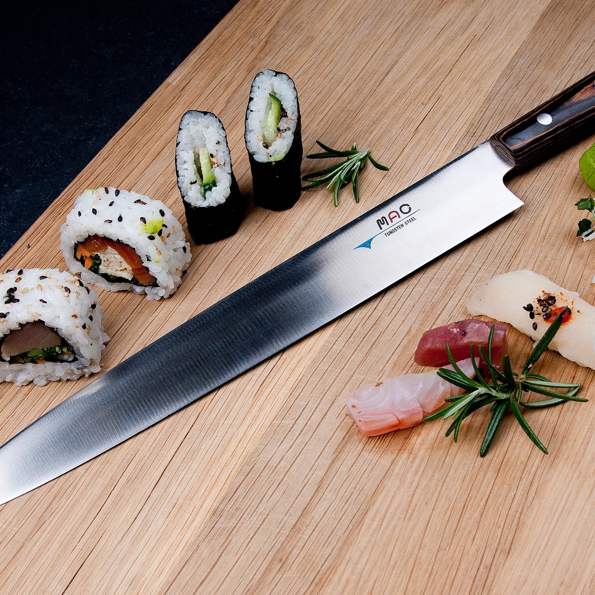Funktion: Kniven är utformad för att skära lövtunna skivor av kött eller fisk i ett enda drag och för att få en så fin skäryta som möjligt. De är enkelslipade knivar som slipas för höger eller vänster hand. Ett utmärkt val för sig vill servera exempelvis sashimi eller carpaccio som ett proffs. Yanagiba används flitigt på inte minst Sushirestauranger.