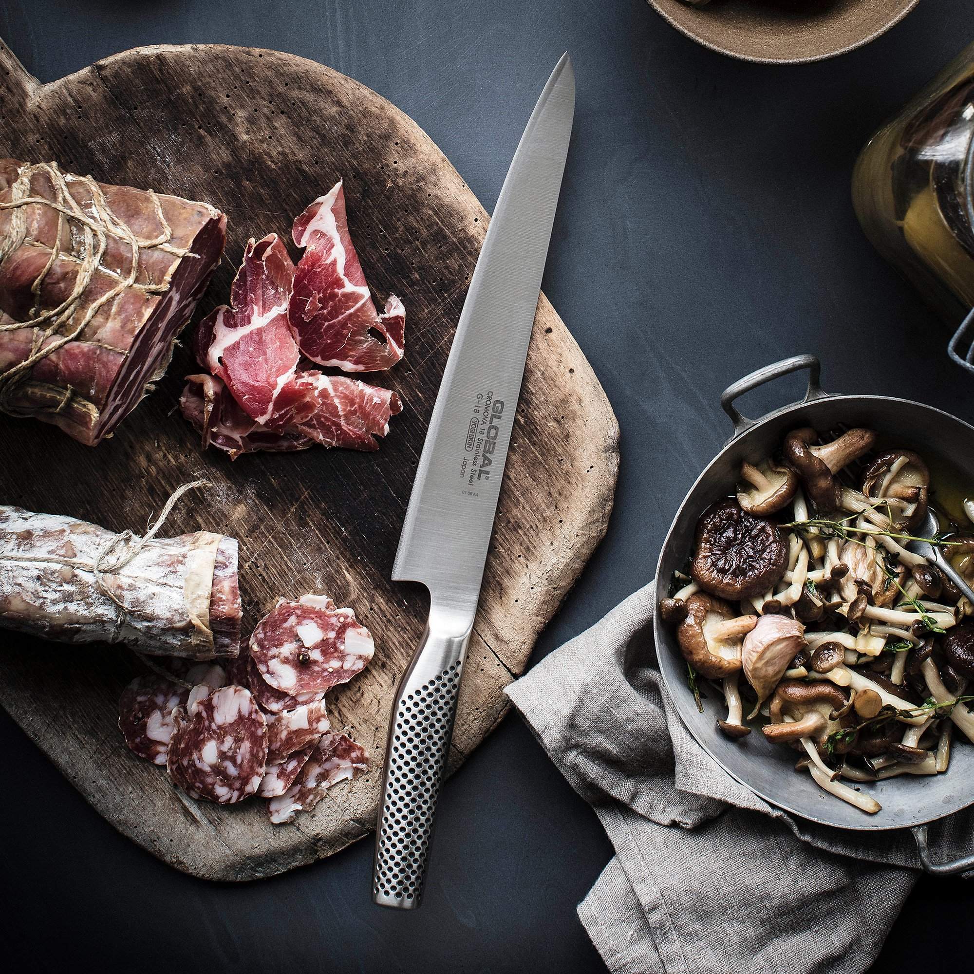 Funktion: Har ett rejält långt och tandat blad som till exempel är bra att ha när du ska dela ett stort vitkålshuvud på mitten och vill slippa göra en massa omtag för komma igenom. Det tandade bladet behövs också för att ta sig igenom hårda brödytor utan att mosa brödet. Det är helt klart en av de längre knivarna i köket.