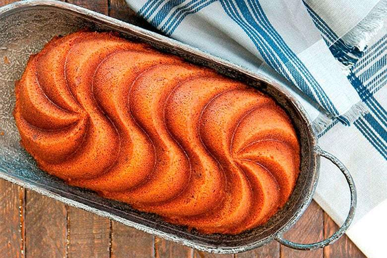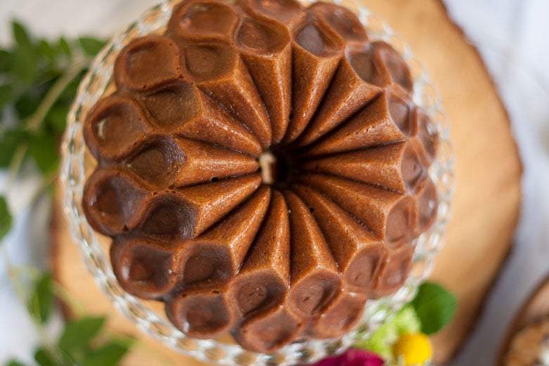 Häll över degen i formen och fördela den jämnt. Då mitten gärna ska vara mjuk kan tiden i ugn variera. Grädda den i ca 60–65 minuter. Låt den därefter svalna på ett galler i 60 minuter innan du tar ut den ur formen. Lägg den på ett fat och låt den svalna ytterligare en stund innan du häller på glasyr.