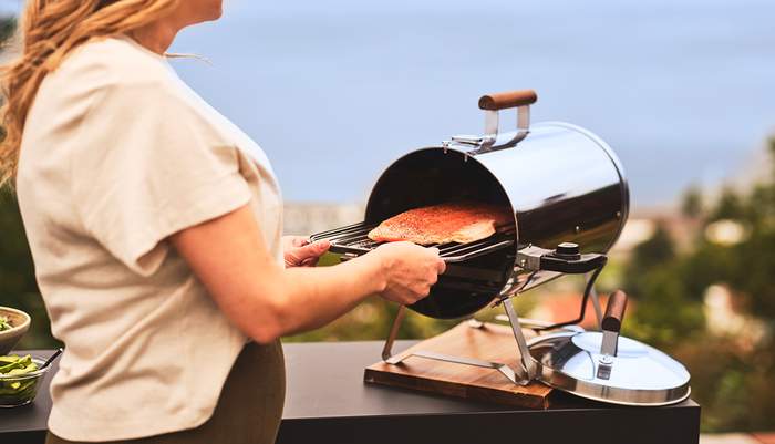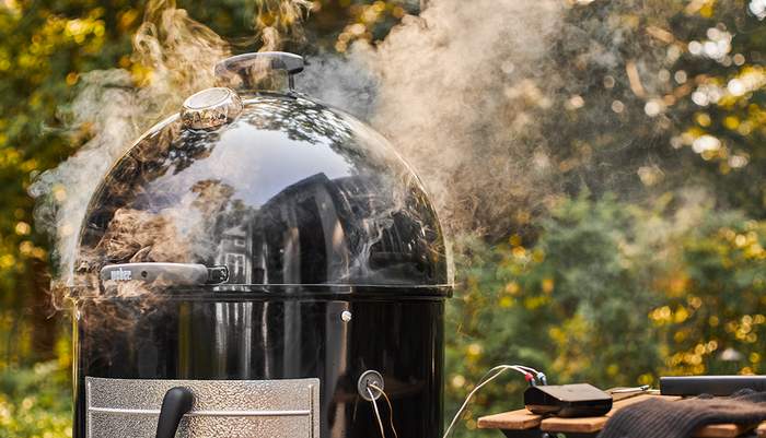 Kamado/kolgrill – När du röker med din kamado- eller kolgrill lägger du rökflisen eller träbitarna direkt i den varma kolen och stänger locket på grillen.