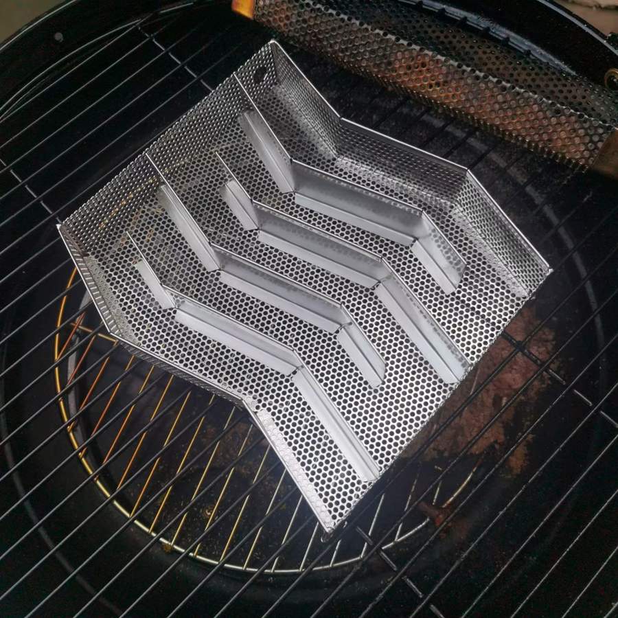Vattenpanna – Vattenbadet används för att öka luftfuktigheten i röken, vilket ger ett saftigare resultat.