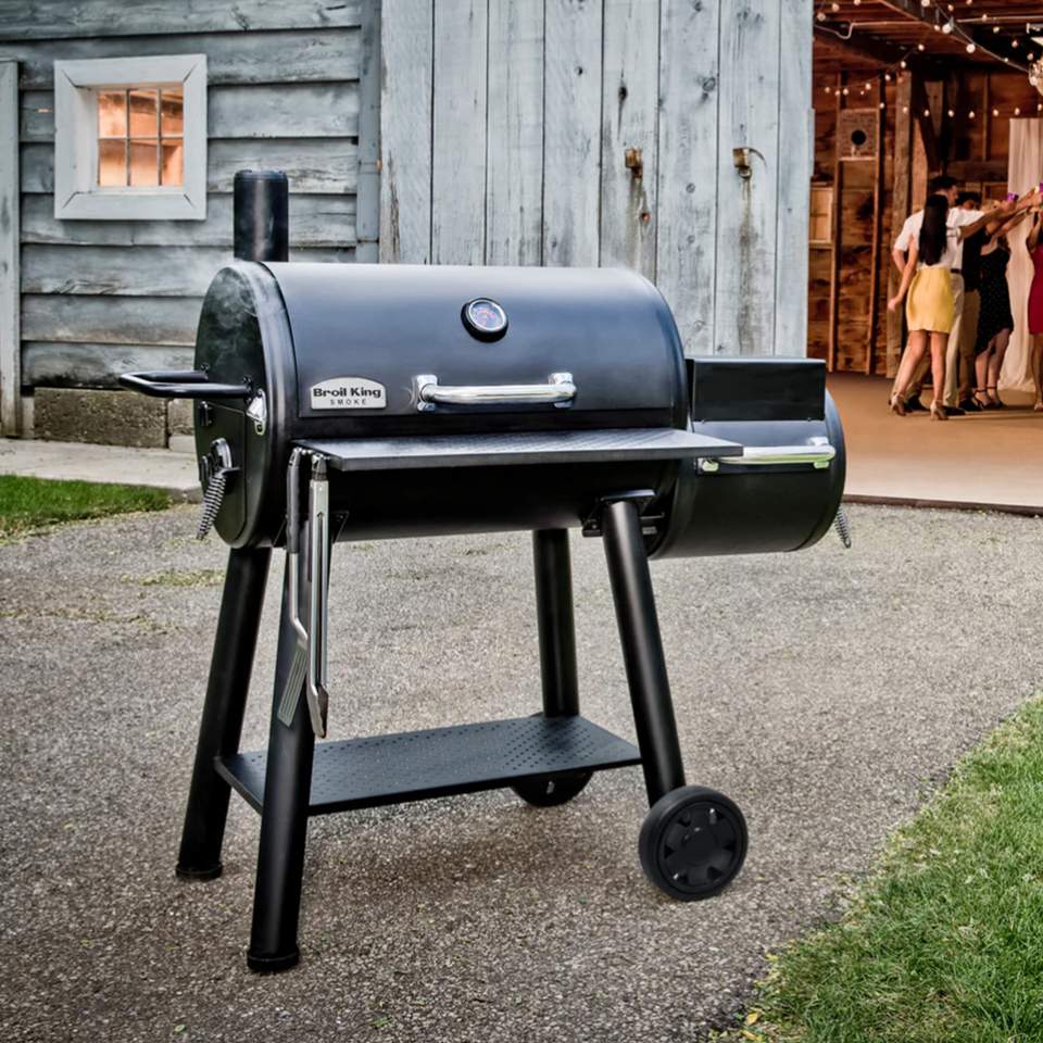 Offset-smoker - En traditionell rökmodell med separat eld-/rökbox på sidan av.