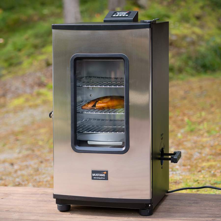 Mustang erbjuder också en något större och vertikal elrök med gott om utrymme. Via den digitala manöverpanelen på ovansidan justerar du enkelt temperaturen från 38°C-137°C och kan ställa in tiden från 0-24 timmar. Röken har dessutom en påfyllningscylinder i det utdragbara rökspånstråget, så att du kan fylla på med spån utan att behöva öppna dörren.