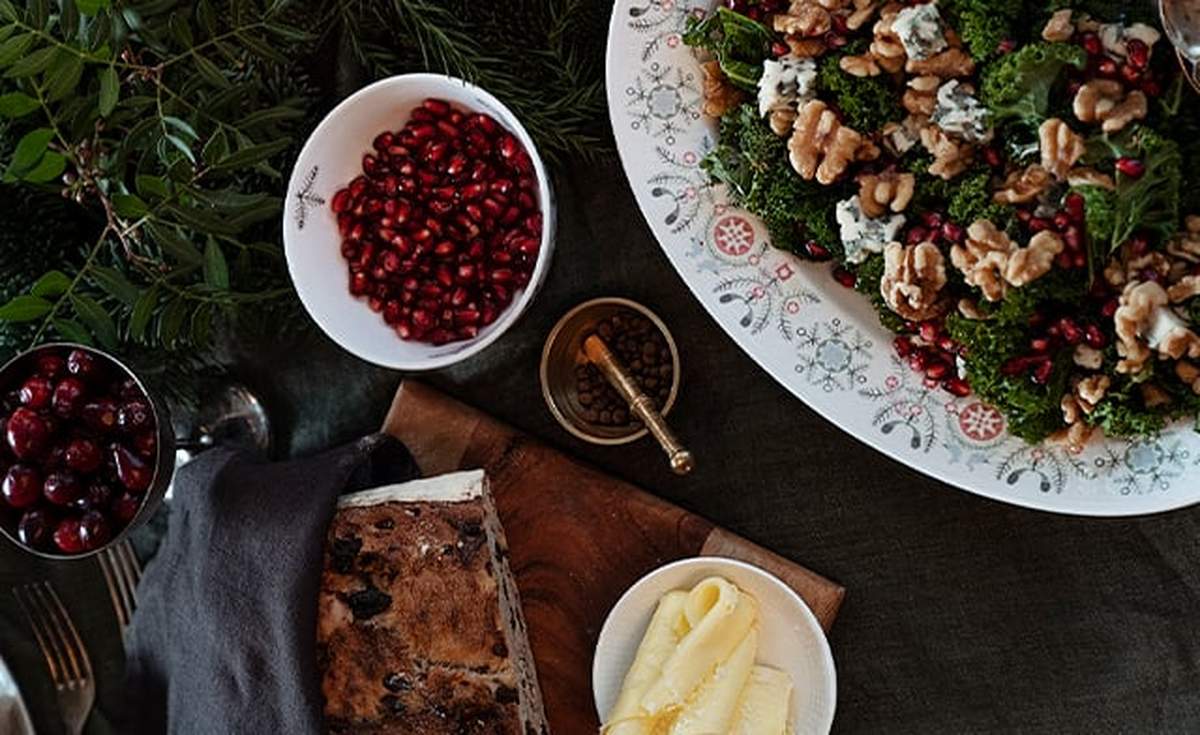 Grönkålssallad med granatäpple, valnötter och blåmögelost
