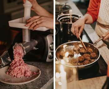 Saftiga köttbullar och handgjord korv - Använd ett köttkvarnstillbehör för att mala köttet och ett korvhorn för att göra korv.
