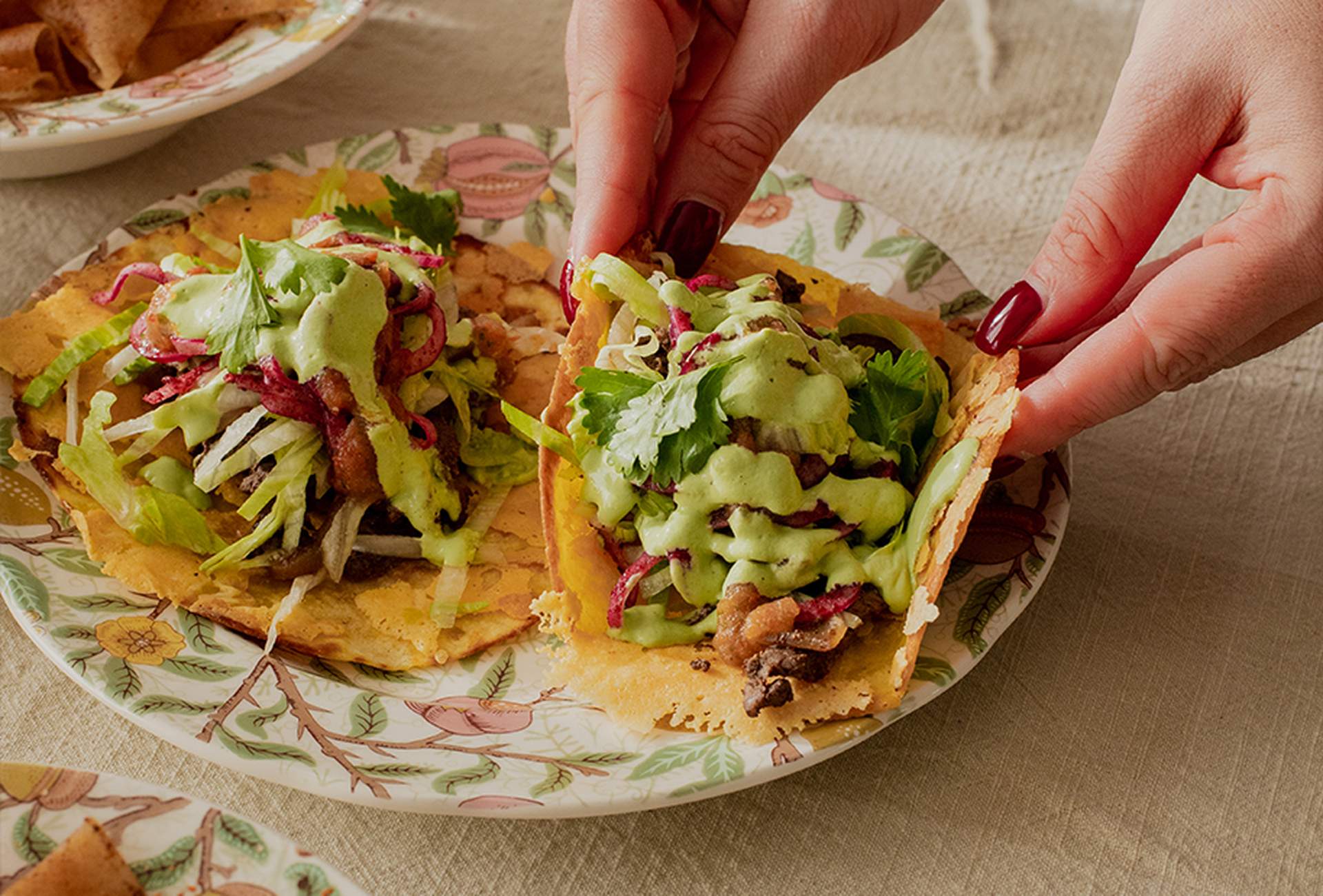 Begreppet "cross-cultural kitchen", eller ”fusionkök”, syftar på matlagning där man blandar tekniker, ingredienser eller traditioner från olika matkulturer. Det handlar inte bara om att sätta ihop rätter från olika länder, utan att skapa något nytt genom att förena deras smaker, tillagningssätt och estetik. Vi har tagit hjälp av Seiran Poon, känd under namnet saltochtahini på sociala medier, för ett fusionmöte mellan Mexiko och Mellanöstern. Häng med och inspireras nedan!