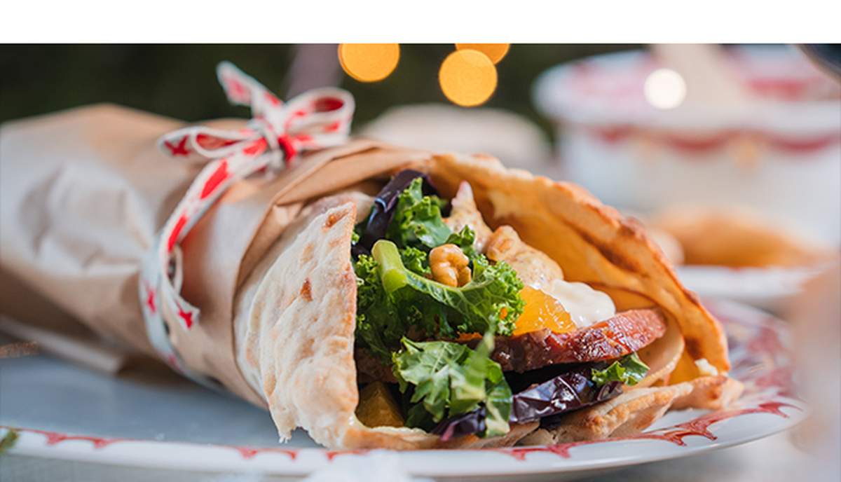Allt detta samlas i en nybakt mjukt tunnbröd.