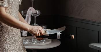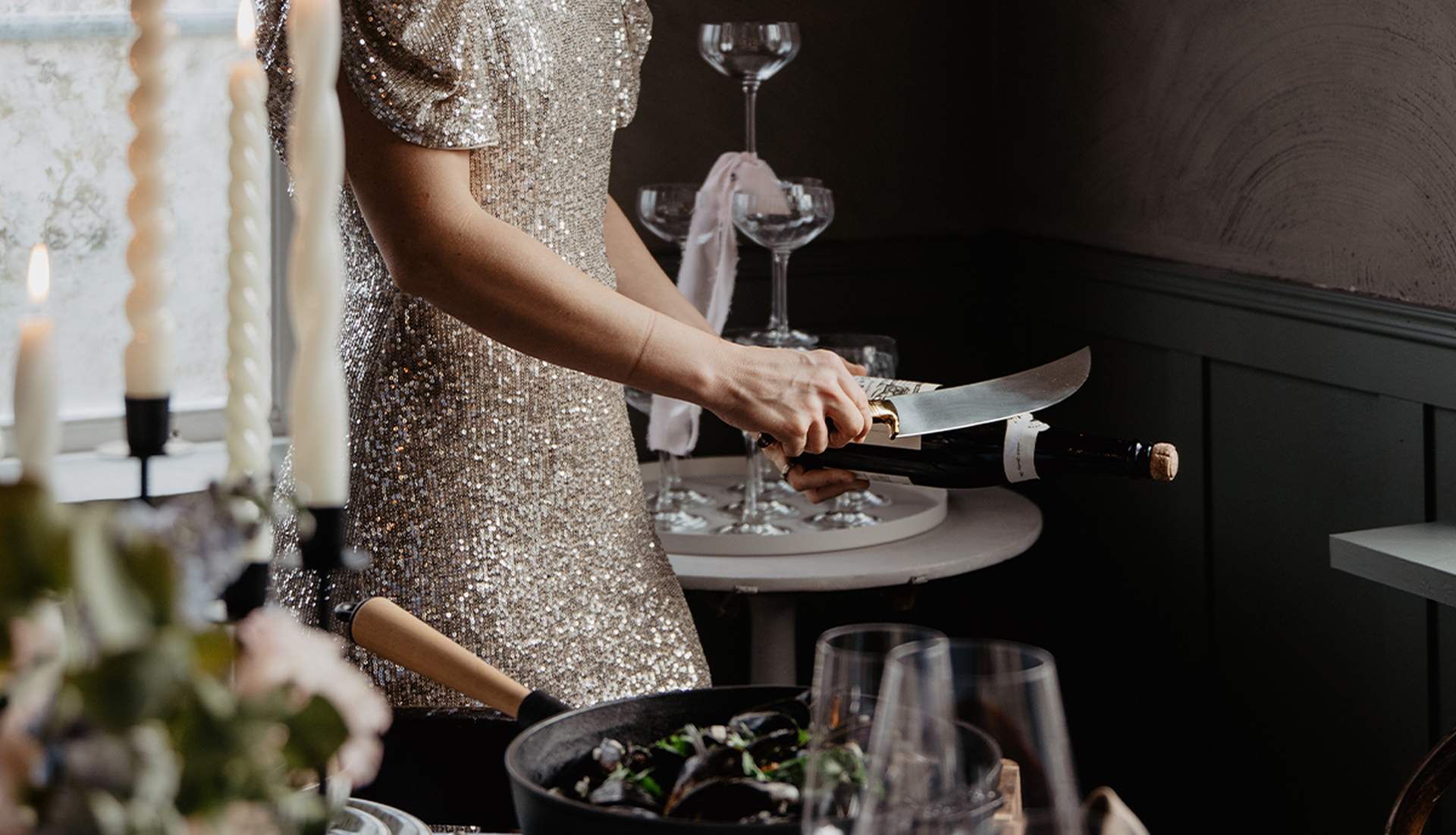 Att sabrera en champagneflaska med en sabreringssabel är inte så svårt som man kan tro. Gör så här: