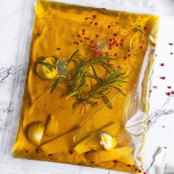 Olivolja smaksatt med rosépeppar, citron och vitlök