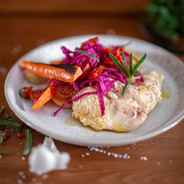 Smörbakad majskyckling med rosmarin och soltorkad tomat