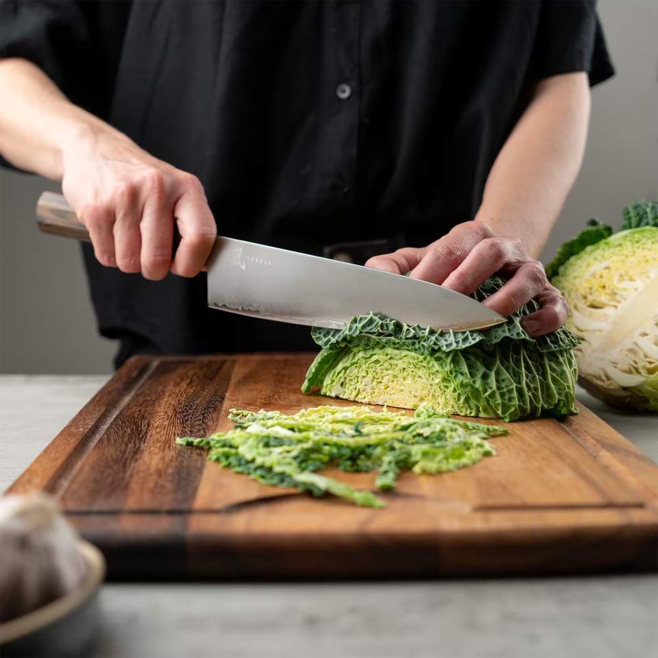 Santokukniven är kanske den vanligaste kniven av de japanska knivarna. ”San” betyder tre på japanska och ”Toku” ungefär uppgifter, vilket kan tolkas som att en santokukniv är lämplig för tre uppgifter; tärna, strimla, hacka, eller kött, fisk, grönsaker. Det är med andra ord en väldigt mångsidig kniv. En santoku är oftast mellan 14 och 18 cm lång.