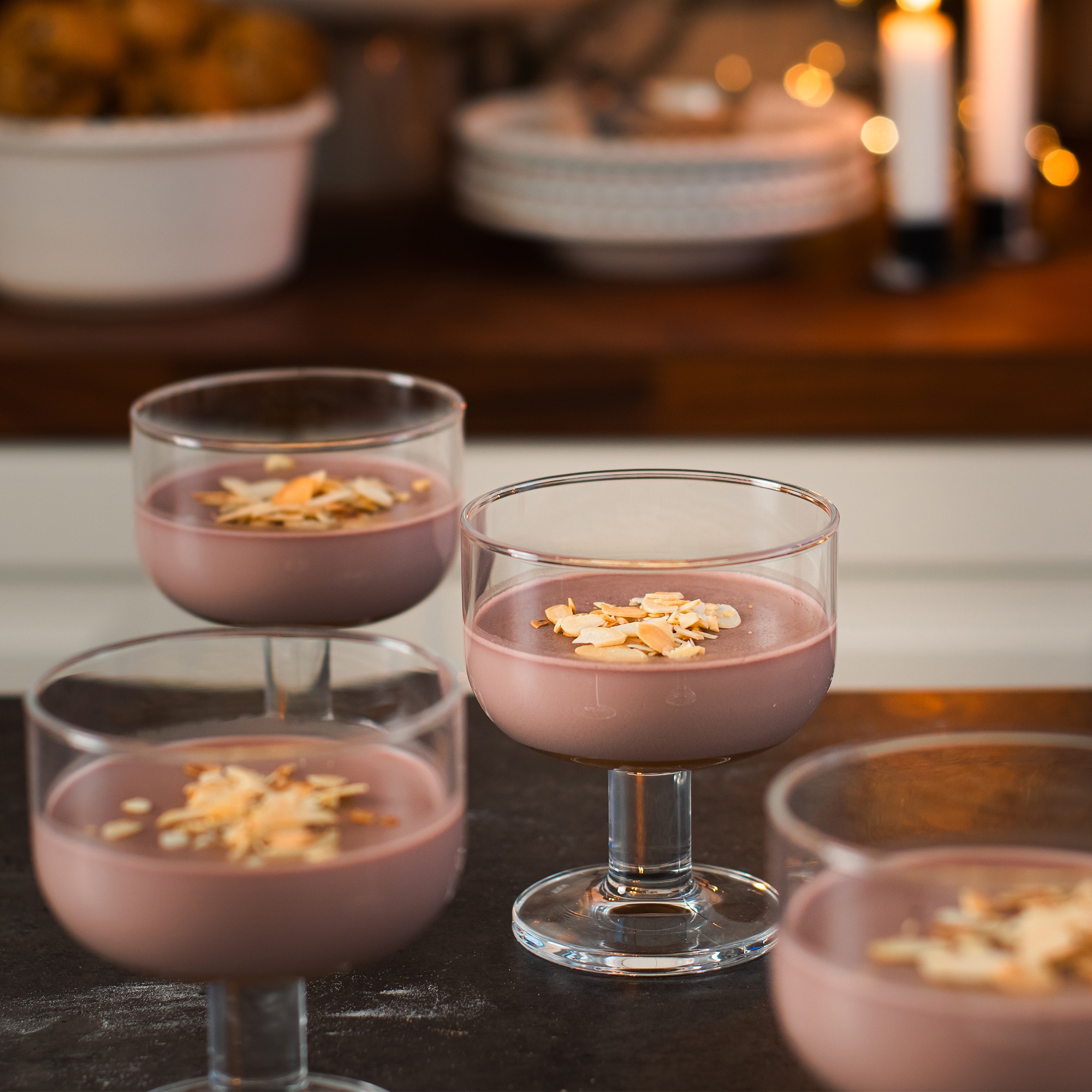 Denna pannacotta toppas med saltrostad mandel och gör succé på vilket julbord som helst.