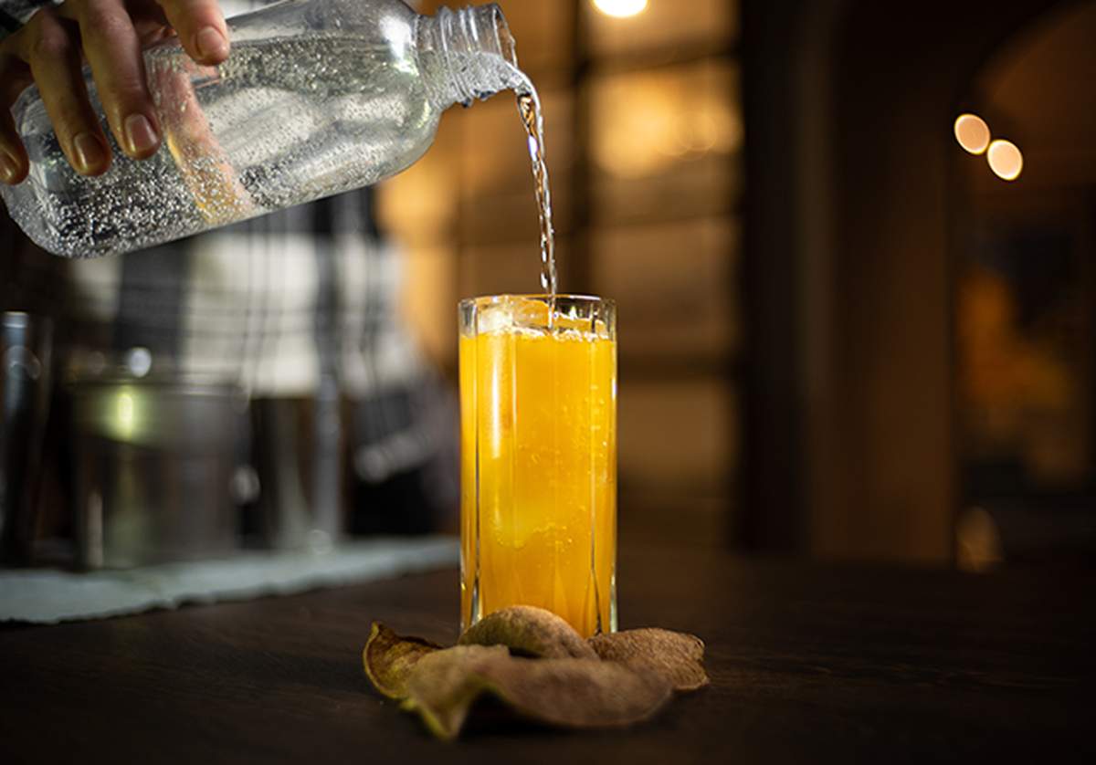 Blanda alla ingredienser i en shaker. Skaka snabbt för att kyla ned. Sila upp i ett högt glas med is och toppa med Soda.