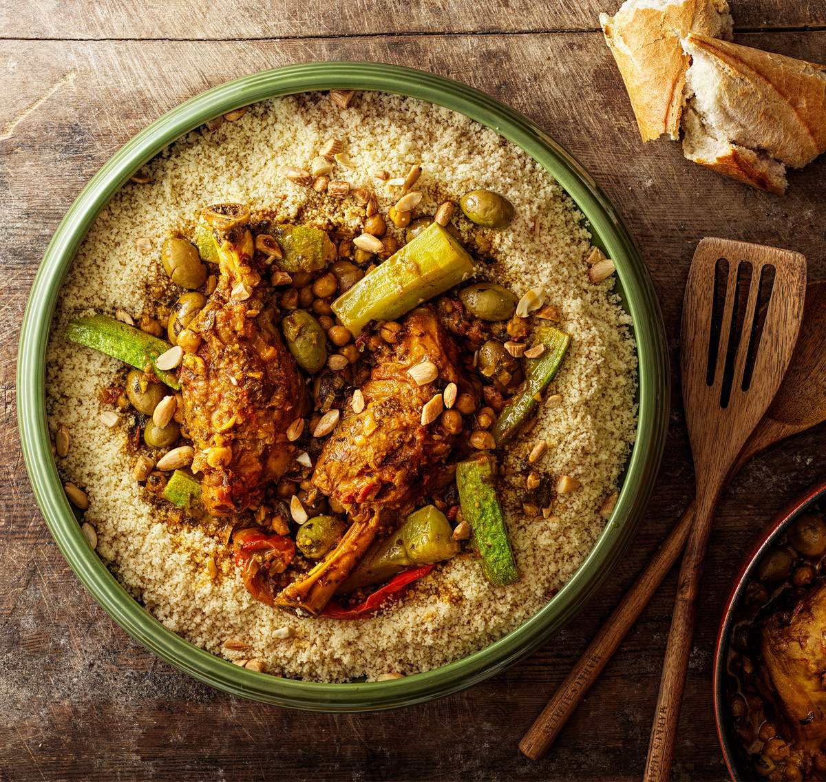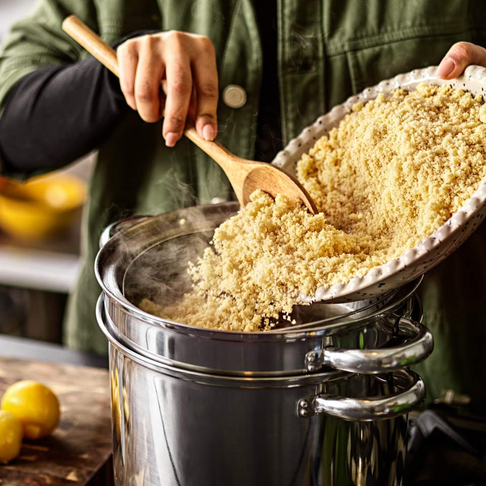 Denna mustiga lammtagine med couscous bjuder på djupa, aromatiska smaker från Nordafrika – med kryddigt långkokt lamm, citron, saffran och oliver, serverat med fluffig, smörig couscous.