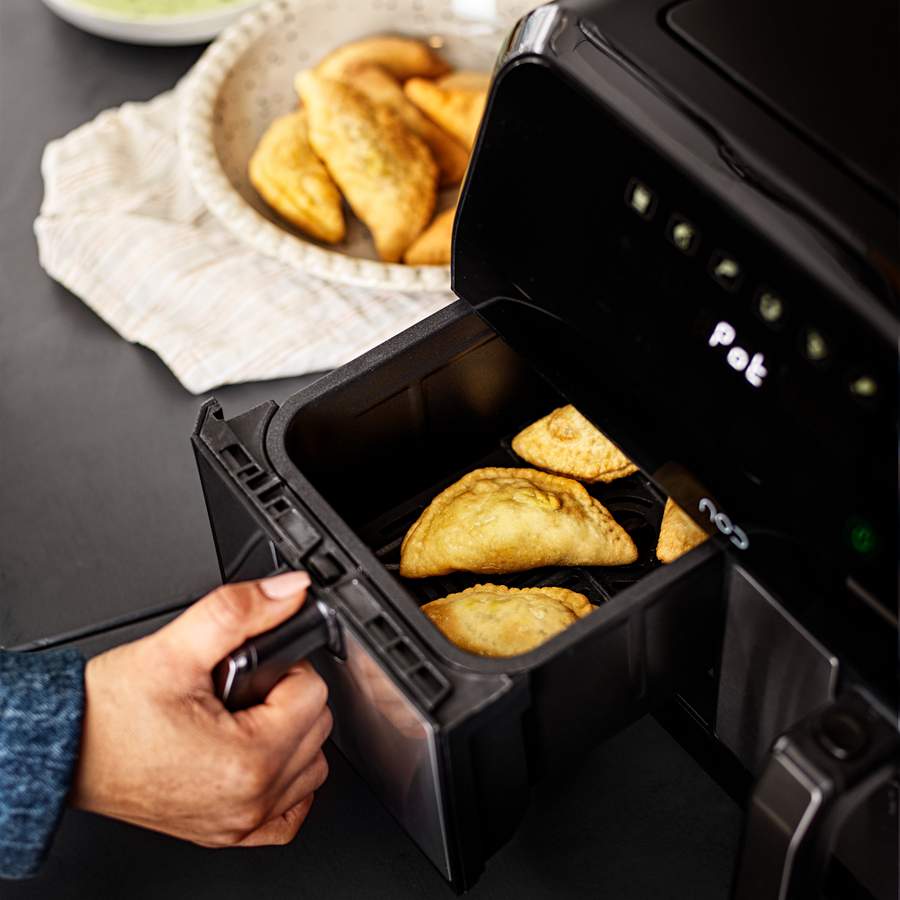 Testa på att göra egna kryddstarka samosas från grunden! Fyll de med kryddor, gröna ärtor och örter och fritera i het olja.