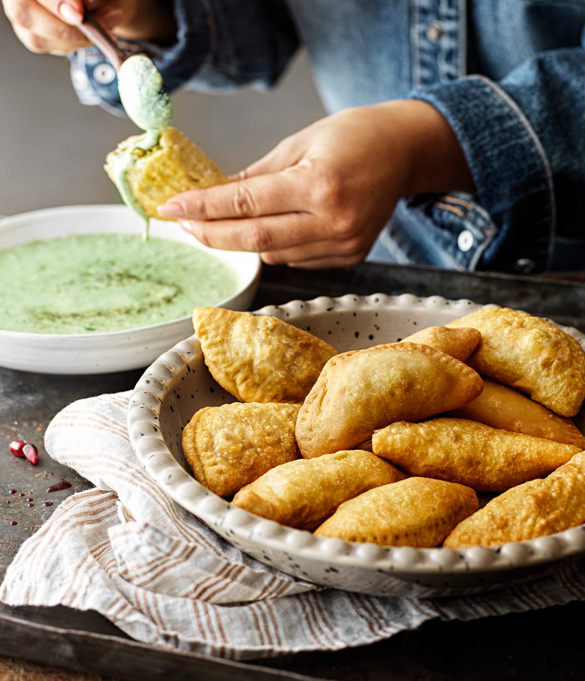 Recept: Köttfyllda samosas med kall örtsås