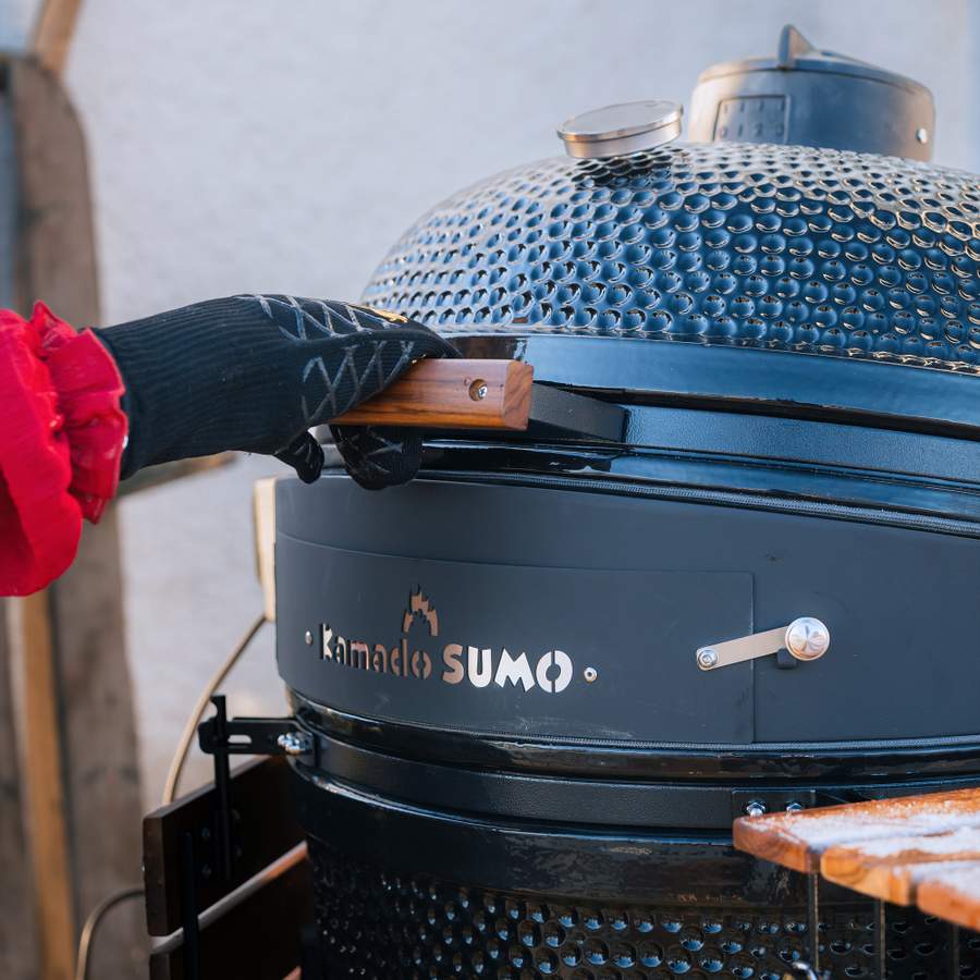Hälsa gästerna välkomna med levande eldar och bjud på en härlig varm drink ute i trädgården. Låt ett saftigt långtidsgrillat kött tillagas på rotisseri i Kamado Sumo – självklart kan man grilla även på nyårsmiddagen!