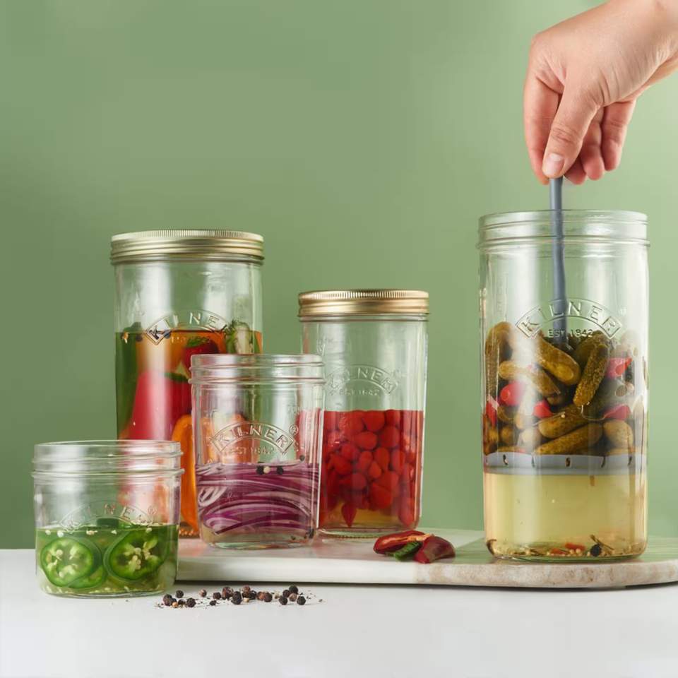 Kilner är klassikern som aldrig går ur tiden. Deras ikoniska glasburkar kombinerar hållbar kvalitet med modern funktion och är perfekta för allt från sylt och inläggningar till servering och köksförvaring.