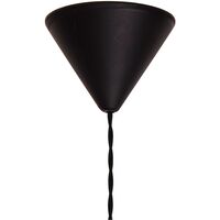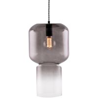 Lampan är tillverkad i glas som elegant går från vald färg till klar i en flytande övergång. Glaskupolen är stöpt i ett stycke och har en tydlig avgränsning i mitten som ger ett unikt uttryck. Nog är utrustad med en 120 cm lång svart textilkabel och matchande upphäng i plast. Lampan mäter 24,5 cm i diameter och 45 cm på höjden.