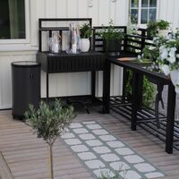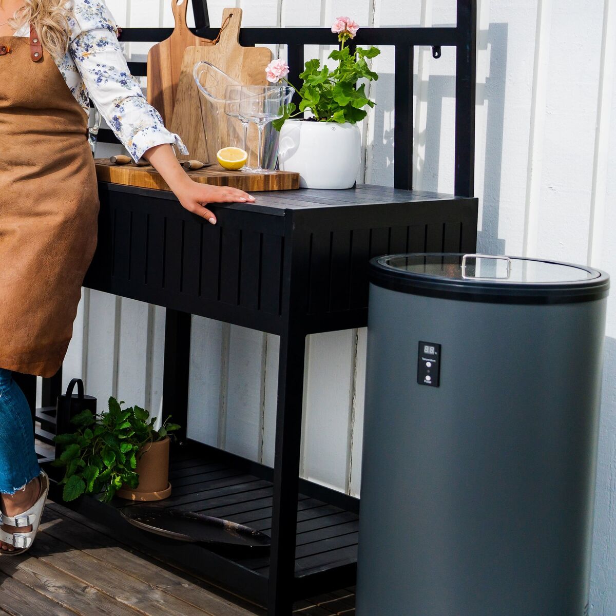 Använd det som kökselement bredvid grillen för att få extra arbetsyta eller som arbetsbord i trädgården eller kolonilotten. Utomhusköket har praktisk förvaring som du kan komma åt genom att lyfta bordskivan i två separata sektioner. Observera att regn och annan fukt kommer att tränga in i förvaringsutrymmet, så förvara inte ömtåliga saker om utomhusköket står oskyddat.