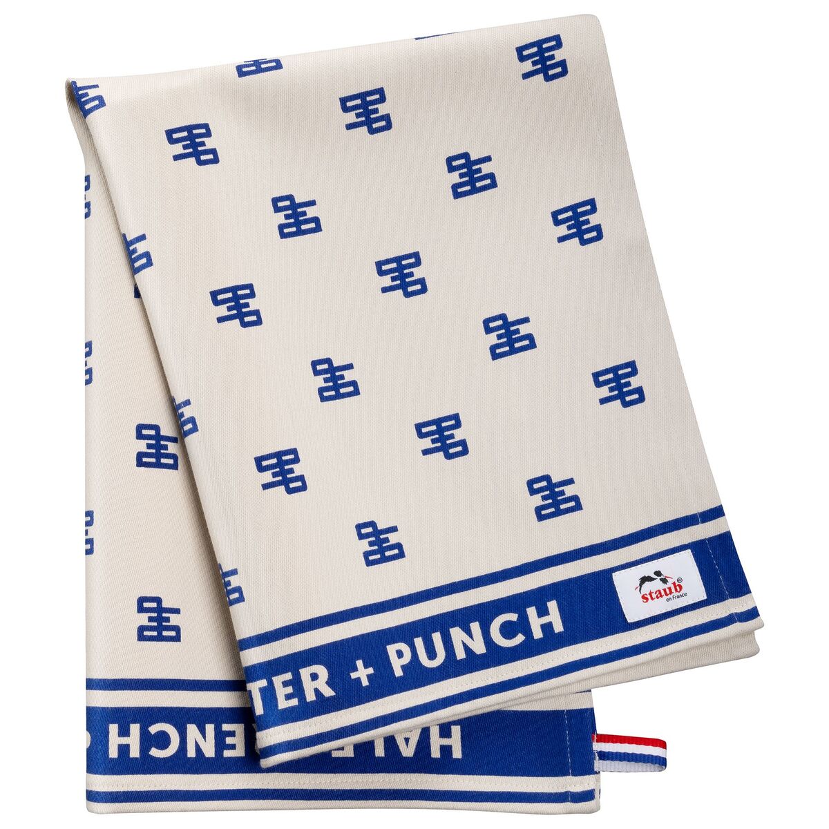 Precis som alla produkter från Staub så håller den här kökshandduken allra högsta klass. Den högkvalitativa handduken är delvis tryckt med logotypen för det välkända brittiska inredningsmärket Buster+Punch och är försedd med en dekorativ broderad stekpanna. Kökshandduken mäter 50 x 70 centimeter och har en praktisk ögla i hörnet för enkel upphängning. Ett utmärkt val för att torka disk, polera porslin, torka av arbetsytan eller för att torka upp spill när det är snabba ryck i köket. En självklar följeslagare vid spisen som dessutom fyller en dekorativ funktion i inredningen – ett unikt designföremål i begränsad upplaga.