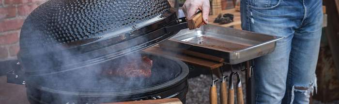 En bra grej med Kamado Sumo är de olika grillzonerna för direkt- och indirekt värme. Har köttet fått för mycket färg – flytta över det till den indirekta värmezonen och grilla färdigt köttet där.