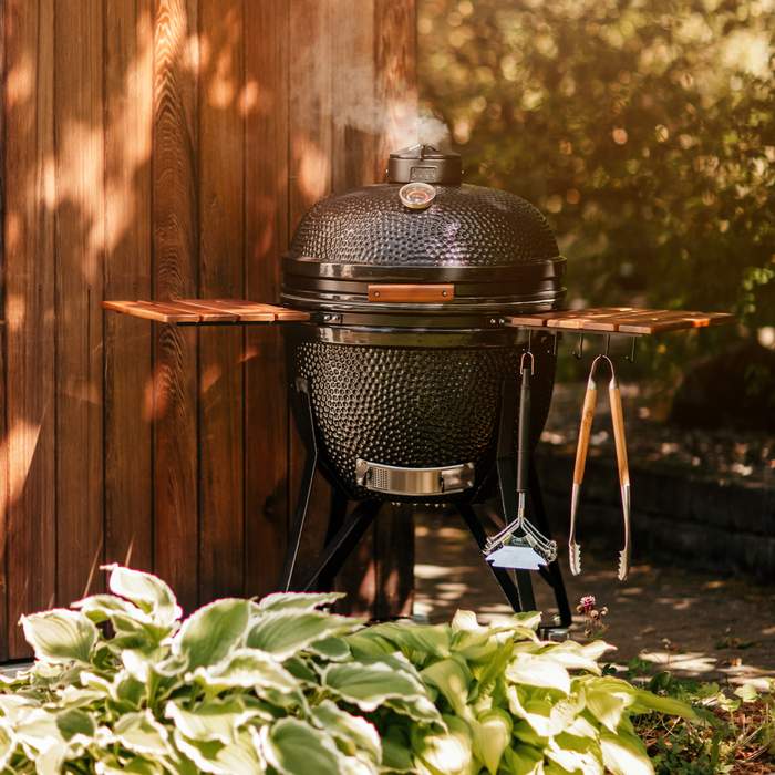 Den robusta keramiken håller värmen, även i minusgrader, så att du kan grilla året om. Dess jämna värmefördelning gör att glöden varar länge – även med lite kol.