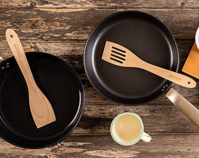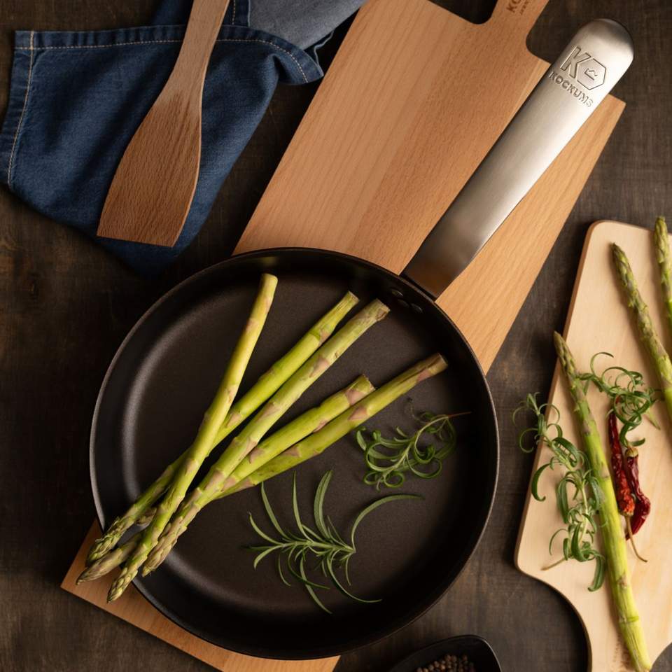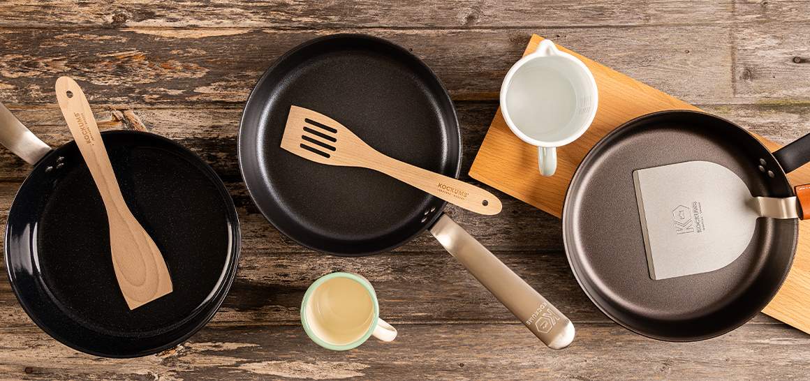 Stekpannan från Kockums Jernverk är inbränd när du köper den - skölj bara av och torka torr med hushållspapper. Därefter är den redo att börja använda den direkt.