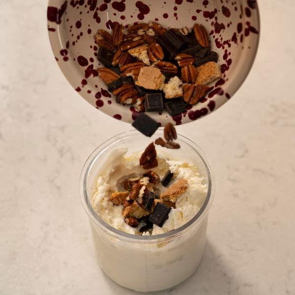 Användningen är smidig: frys din blandning i 24 timmar, sätt in skålen i maskinen och låt den förvandla innehållet till en krämig dessert med ett knapptryck. Den avancerade tekniken ger jämn och perfekt konsistens utan extra moment. Maskinen har 9 program, bland annat för glass, gelato, sorbet, milkshake, smoothie bowl och frappé, samt en Mix-In-funktion för toppings.